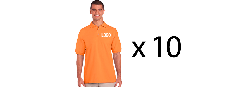 10 Uneek Heavy Weight Polycotton polo shirts (different colours and sizes) with left chest embroidery (incl. artwork set up and delivery).